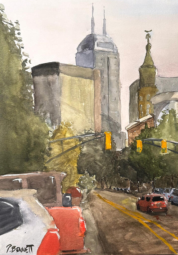 Peyton Bennett is a watercolor artist from the Midwest, whose work captures the dynamic interplay between urban landscapes and natural scenery. Centered on the city of Indianapolis, Peyton’s paintings reflect a deep appreciation for the city’s architectural landmarks and it's serene environs. His art is characterized by a thoughtful attention to detail and a genuine passion for portraying both the vibrancy of city life and the tranquility of the outdoors. As he continues to evolve his artistic voice, Peyton Bennett offers a unique and refined perspective on the familiar and often overlooked beauty of Indianapolis.Please contact the artist to purchase originals and inquire about comissions.